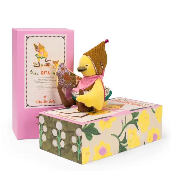 Rita the little duck is a charming articulated doll designed by Lucille Michieli. She loves apple pie and humming!